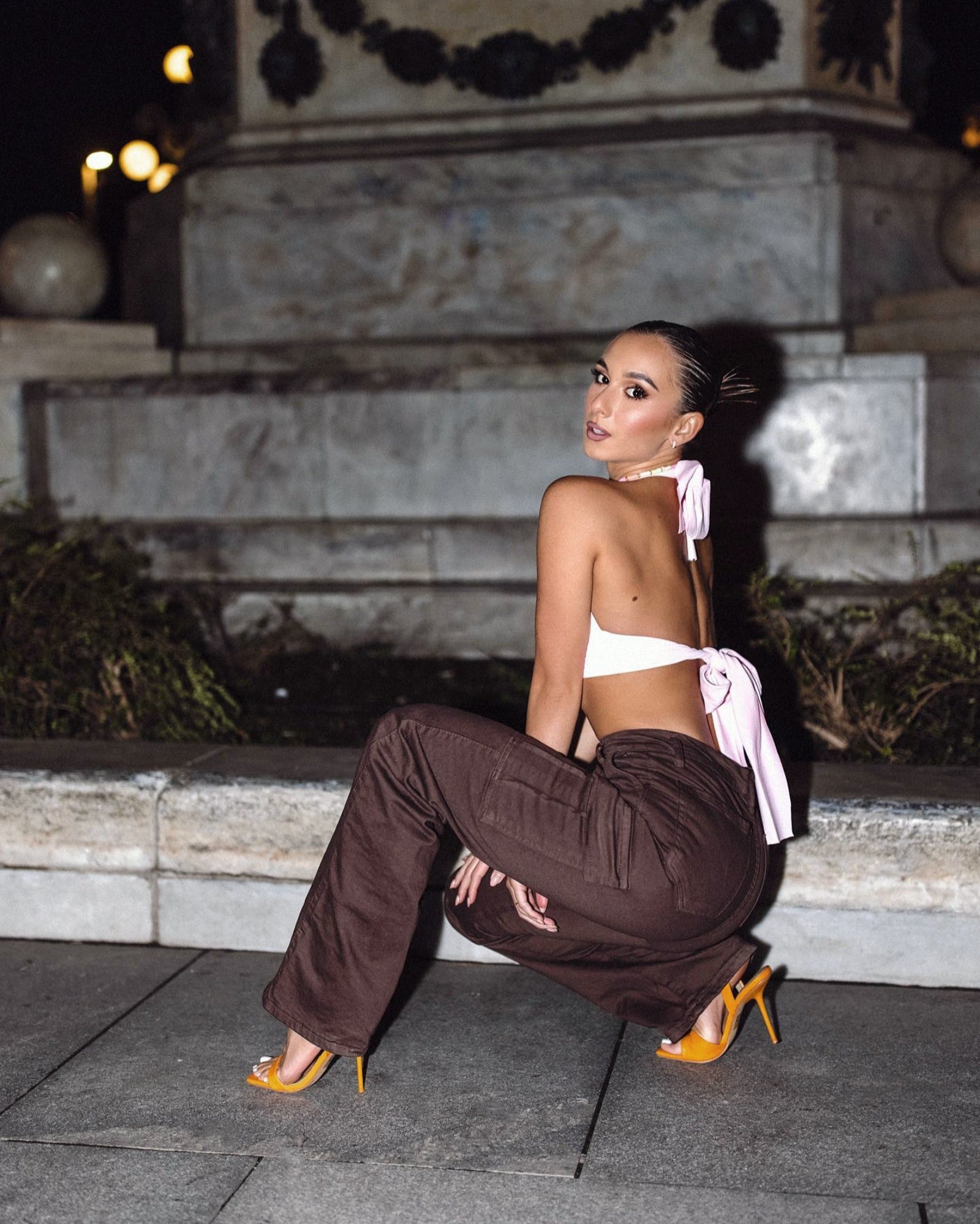 High Waist Cargo Straight Leg Jeans In Chocolate Brown